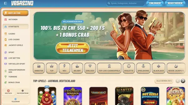 Welche Spiele kann ich bei Casino Vegasino Schweiz spielen?